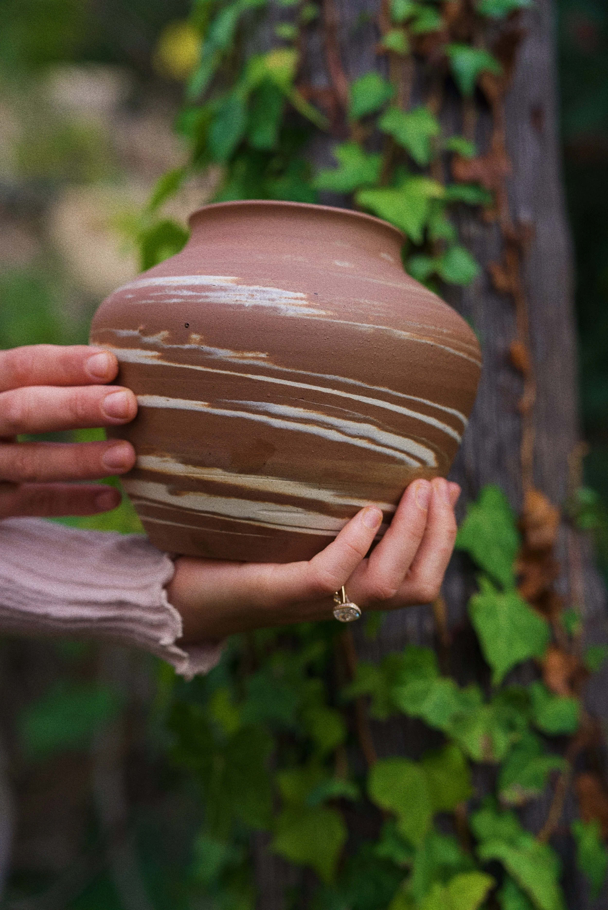 An ode to nature; drawing inspiration from earthy tones, soft organic forms, and the natural beauty of the natural world. Every piece is crafted with care and intention, reflecting Faherty and Emmy Lou Pottery’s dedication to quality, longevity, and a life lived close to the elements.